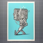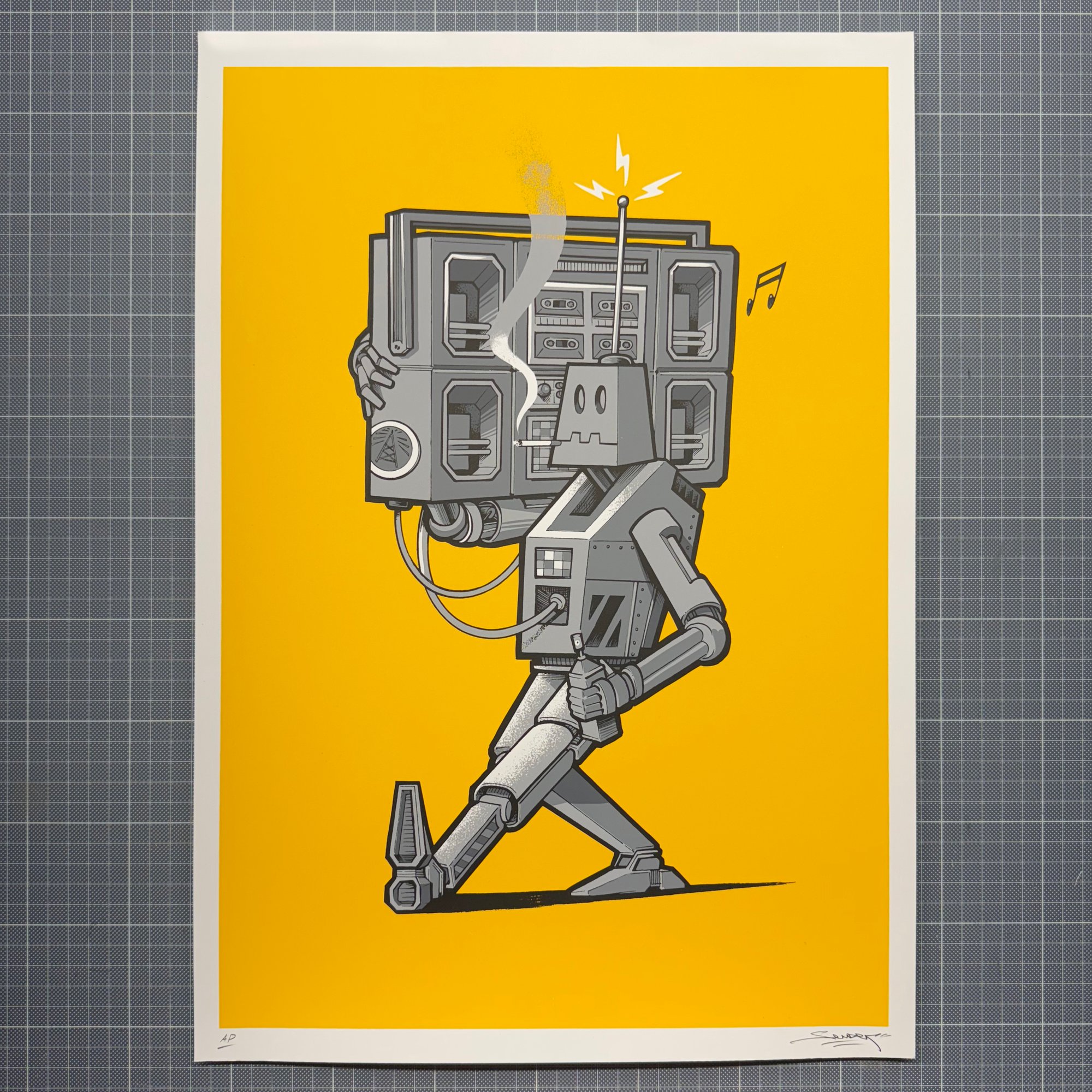 Perfect day going around with a boombox smoking a cigarette.. Edition of 50 across 2 variants (25 blue / 25 yellow) signed and numbered by the artist. A 5 colors print on 300 gr/m2 Acid free Munken White paper. measurements 50 x 35 cm, ships flat.