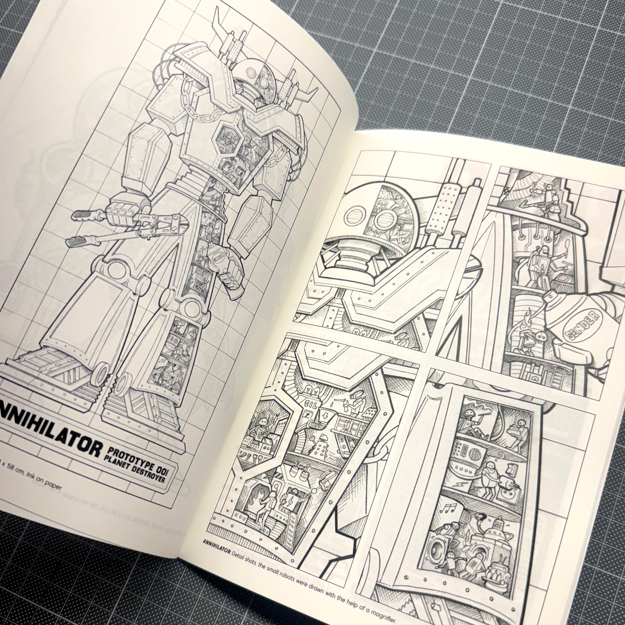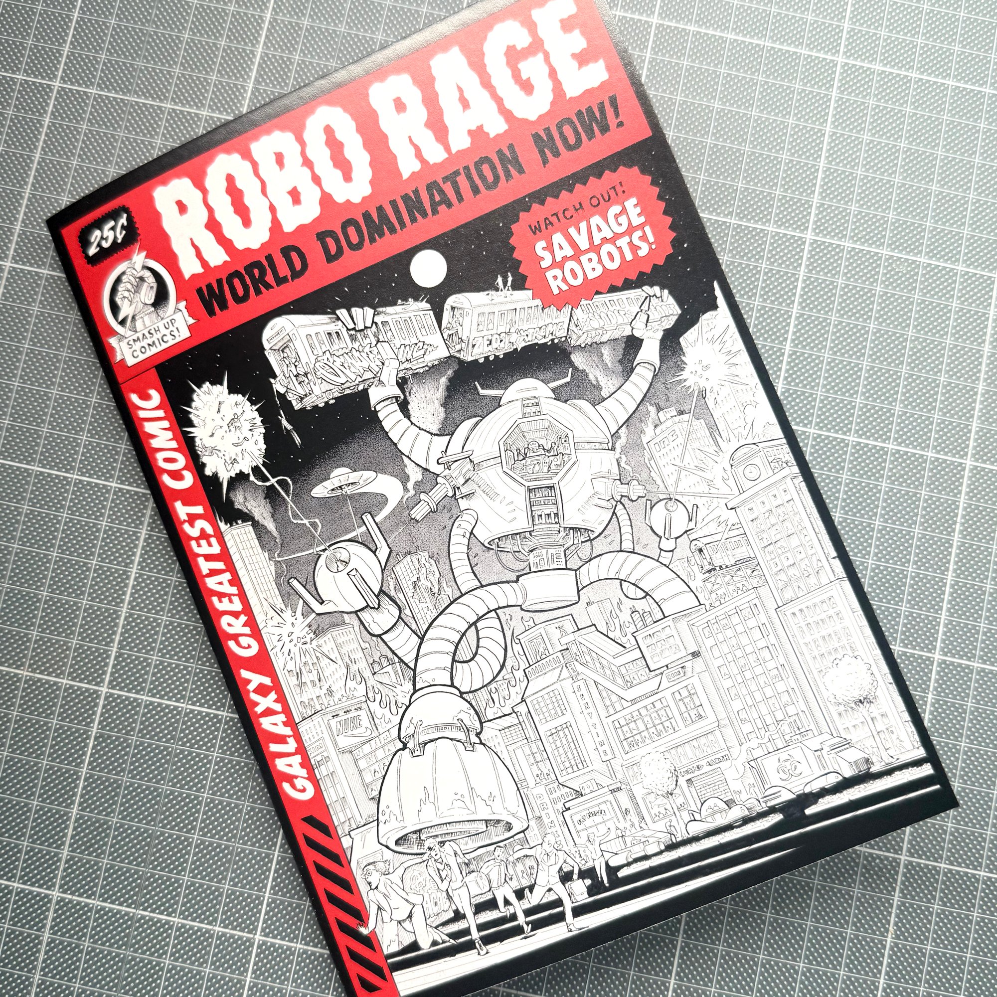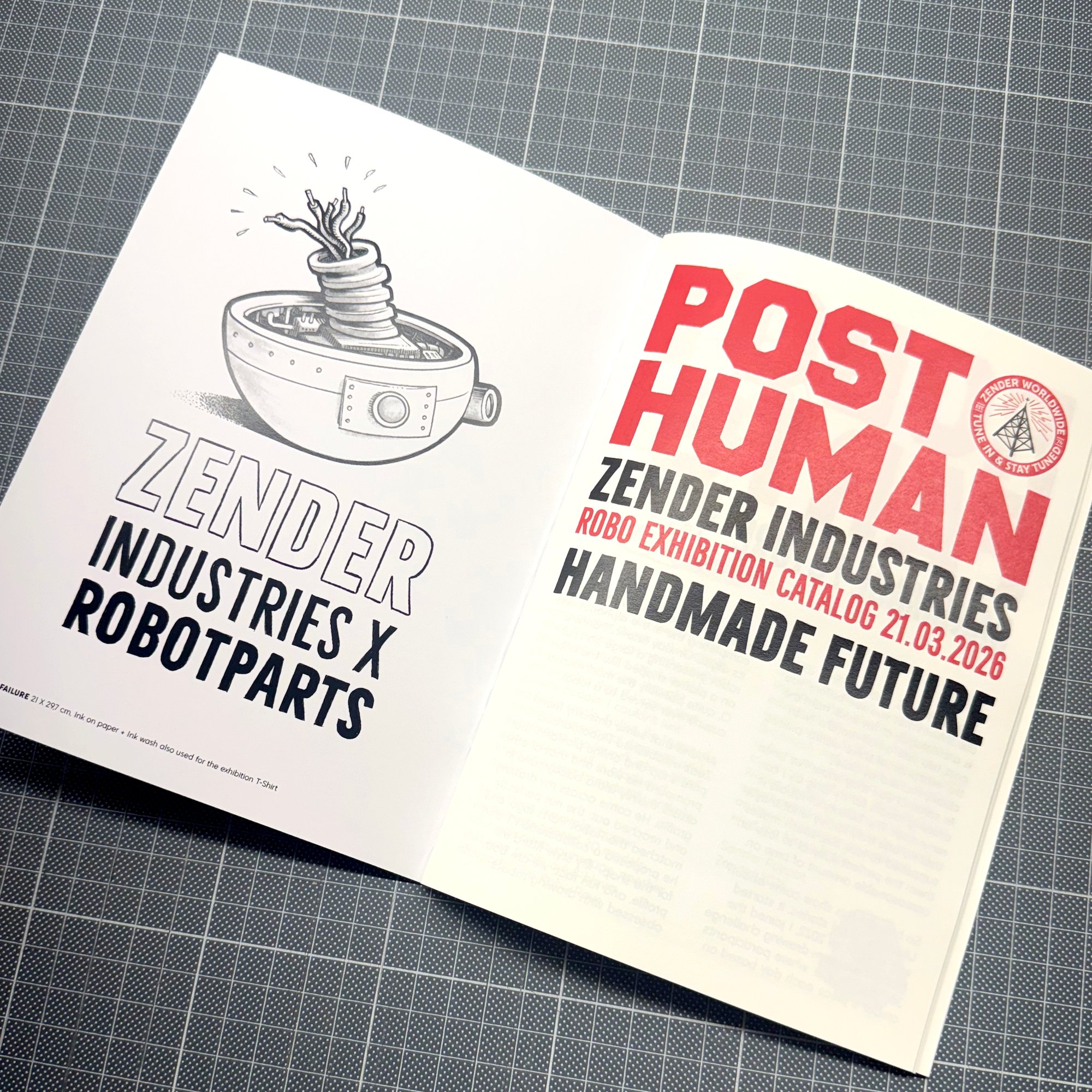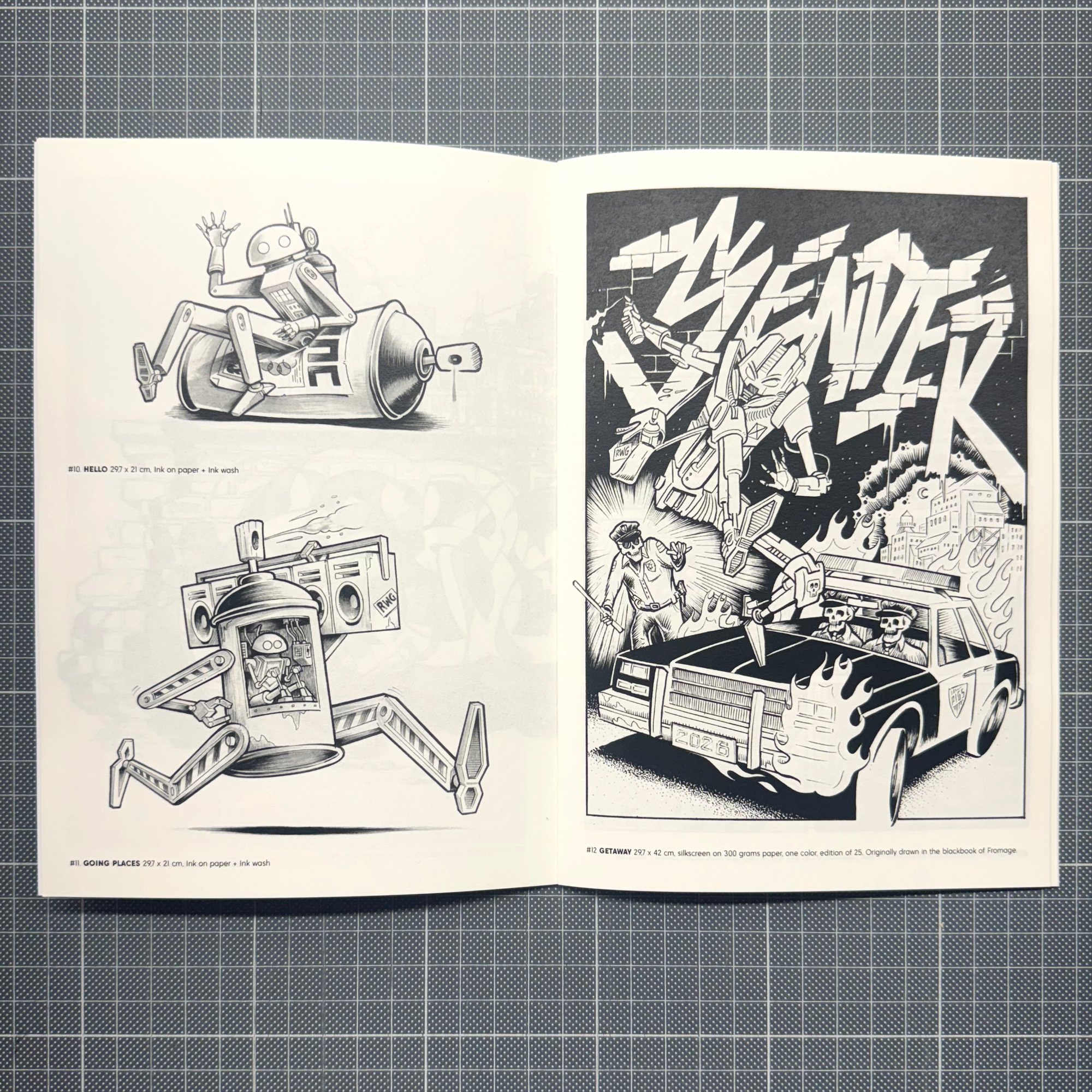 Roborage comics- An exhibition catalogue displaying all the hand drawings and prints and providing a bit of background information on the exhibition. 40 pages A5, designed and signed by Sender.